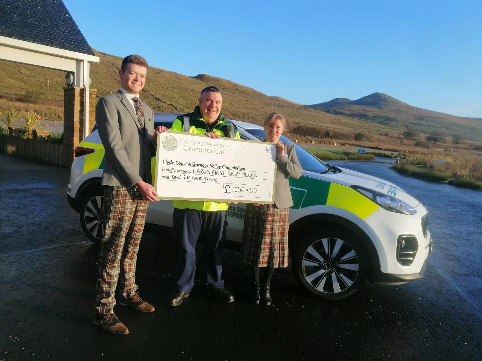 Largs First Responders, Ayrshire Baby Loss Support Group and Scottish Huntington’s Association have each received £1000 – funds that have been gratefully collected through the general charity boxes located within the crematorium, match-funded by the crematorium, and which will help these 3 important local charities continue their outreach work within our local communities.