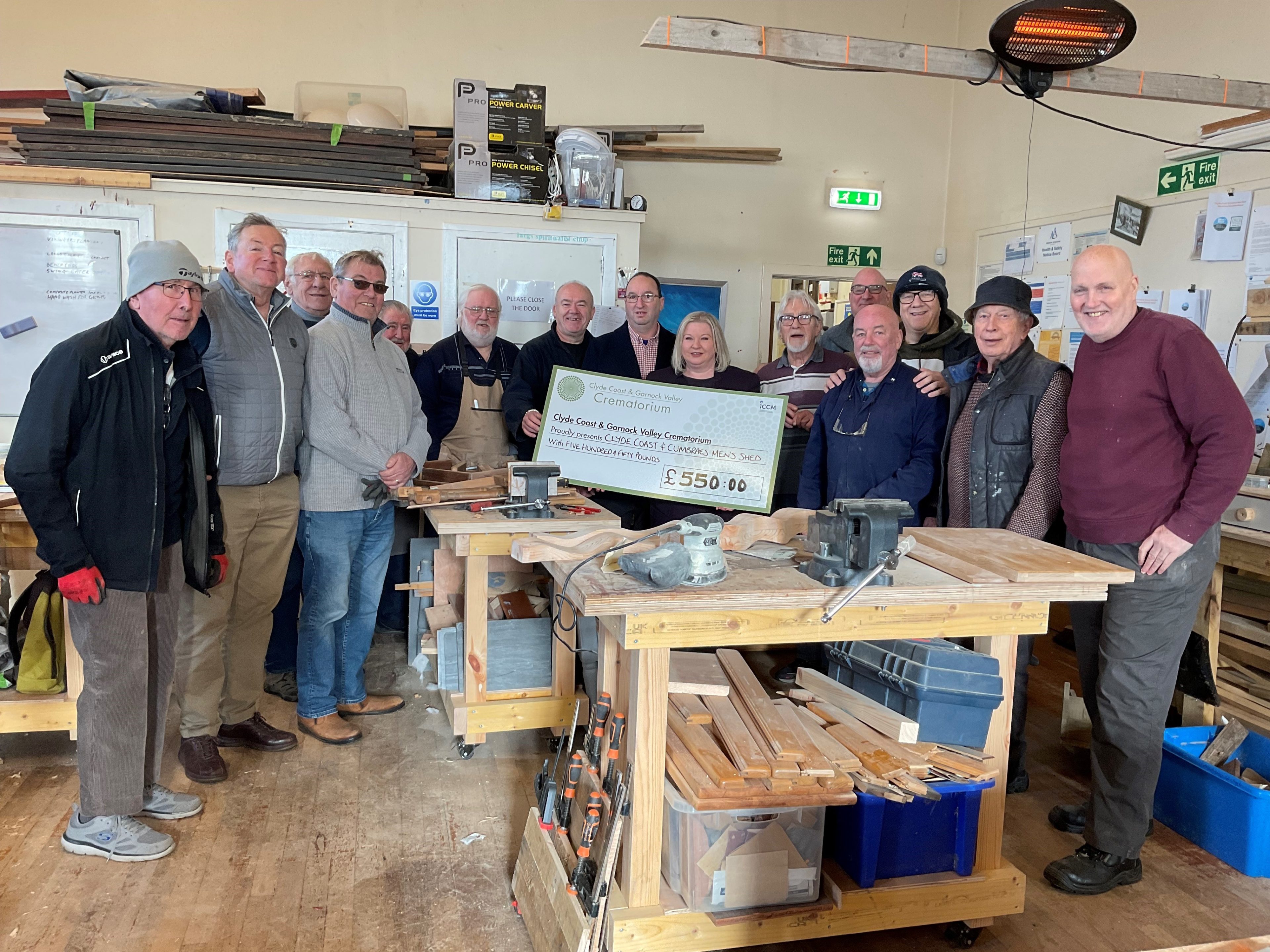 Both the Garnock Valley and Clyde Coast & Cumbraes Men’s Sheds have each received £550 – funds that have been gratefully collected through the general charity boxes located within the crematorium and which will help these 2 important local charities continue to support men’s health and wellbeing within our communities.