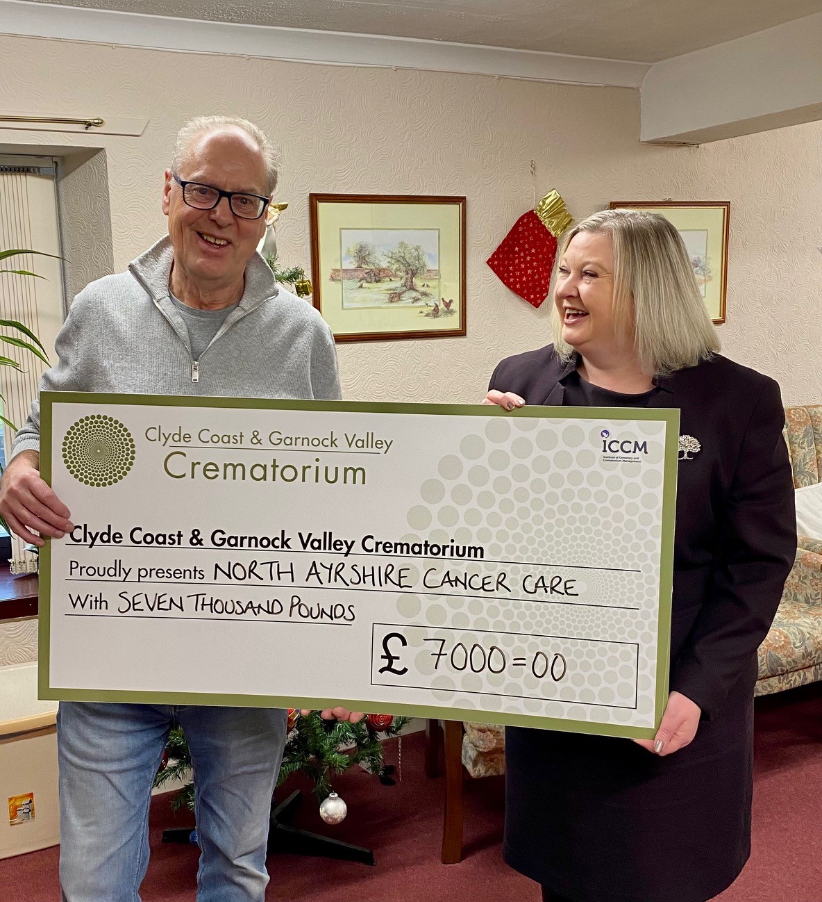 Clyde Coast & Garnock Valley Crematorium has made an important £7000 donation to North Ayrshire Cancer Care to help support the much valued hospital transport service they provide to cancer patients across North Ayrshire.